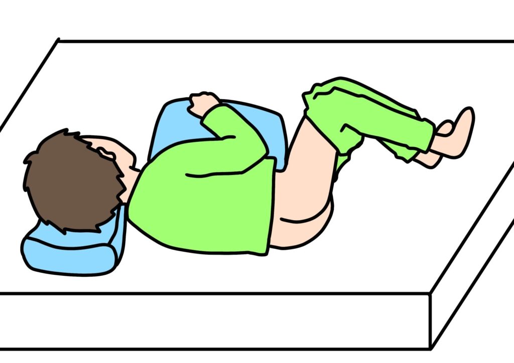 - 左側に寝る: 左側臥位で横になり、膝を少し曲げてリラックスします。