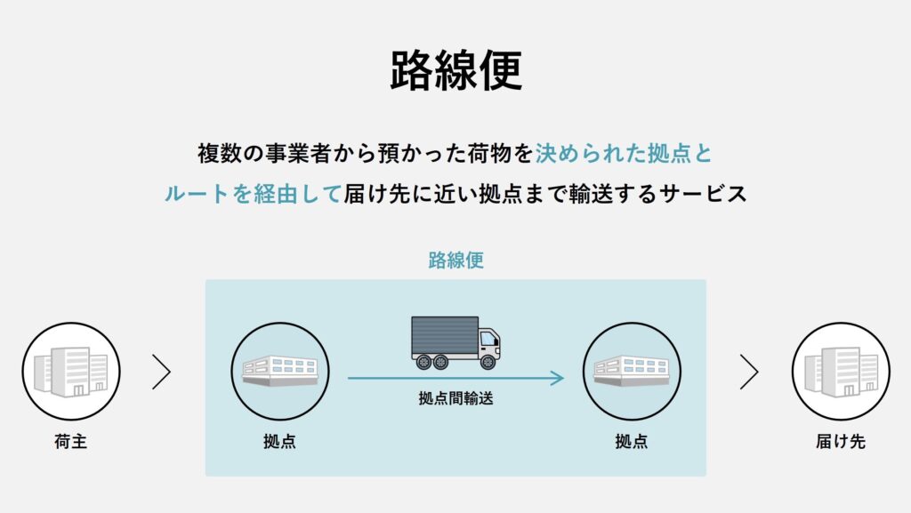 - 柔軟性: トラック路線便は、顧客のニーズに応じて大きさや重量の異なる貨物を運ぶ対応が可能です。