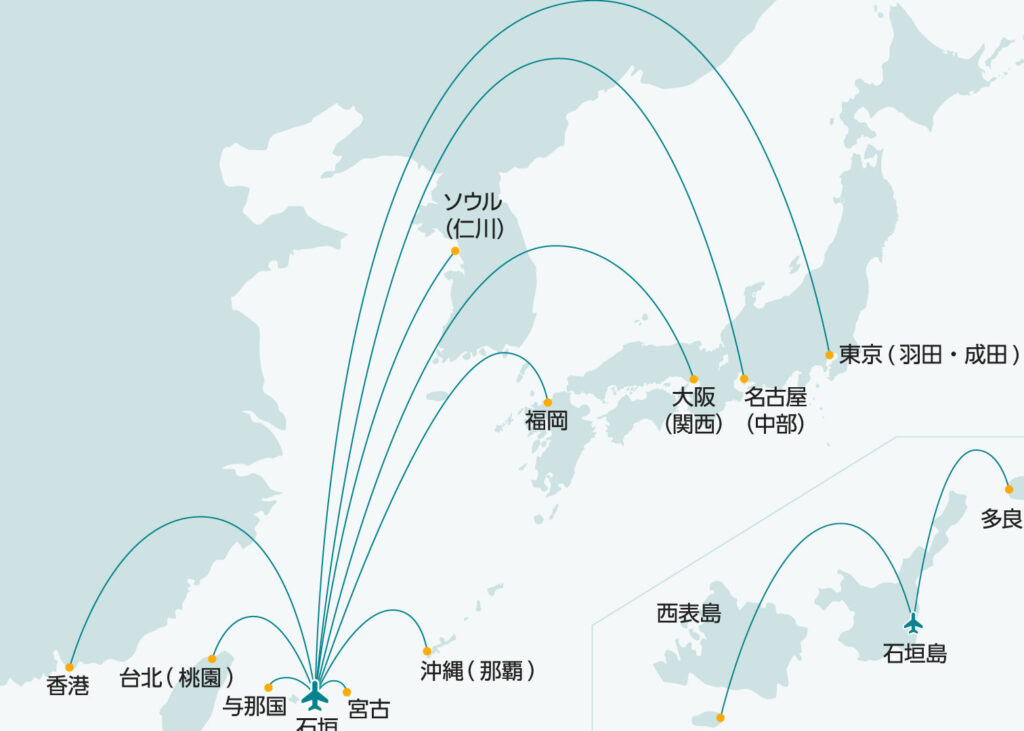 - 琉球エアコミューター: 沖縄本島と各離島を結ぶ便を含め、石垣島にも頻繁に運航しています。