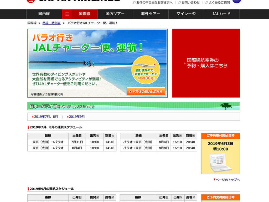 パラオへの直行便について、各航空会社のスケジュールを詳しく見ていきましょう。