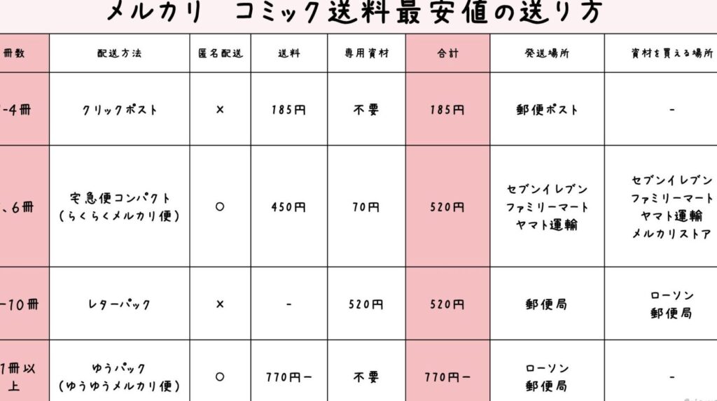- 配送方法の選択: 配送方法として「メール便」を選びます。この時、冊数制限に注意してください。通常、最大3冊までが目安です。