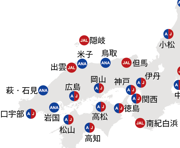 - 名古屋(中部): 名古屋との直行便もあり、中部地方へ簡単に移動できます。