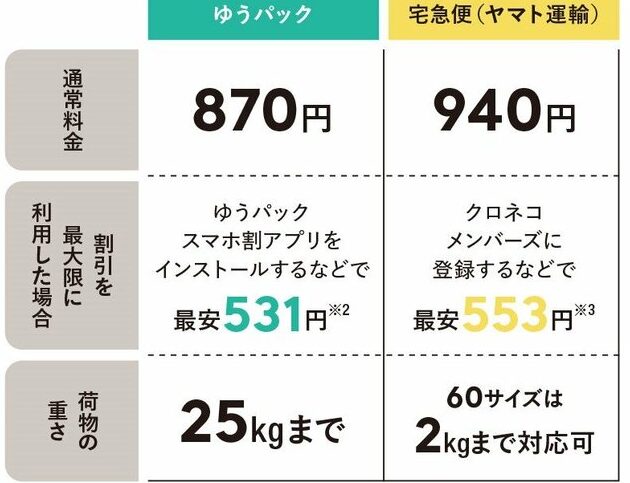 郵便局と宅配便の料金体系は、発送する荷物の種類やサイズによって異なります。具体的な内容を見ていきましょう。