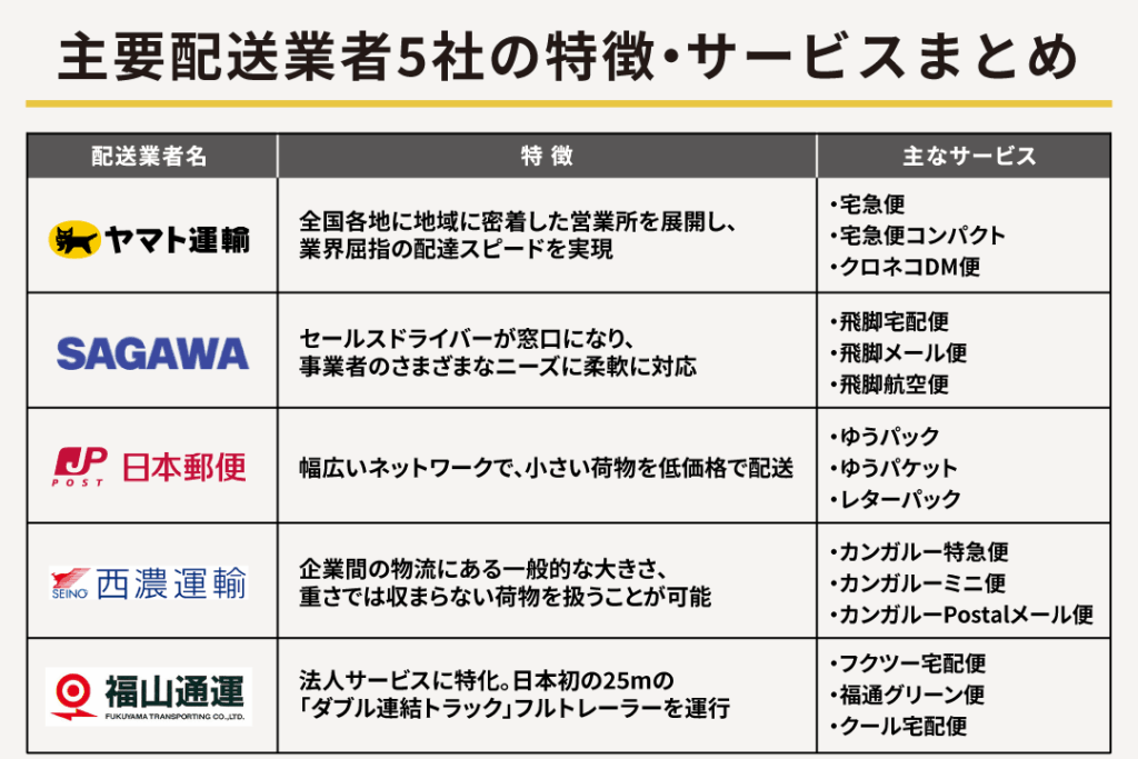 - 宅配便: 幅広い料金プランでコストパフォーマンスが良い