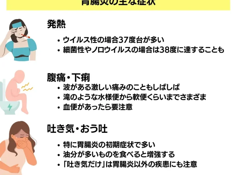 - ウイルス感染:特にノロウイルスやロタウイルスが一般的です。