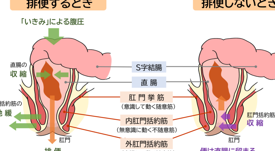 - 筋力の低下: 脂肪組織や年齢に伴い、肛門周囲の筋肉が弱くなることが多いです。これが原因で直腸内の圧力が高まり、便を保持できなくなることがあります。
