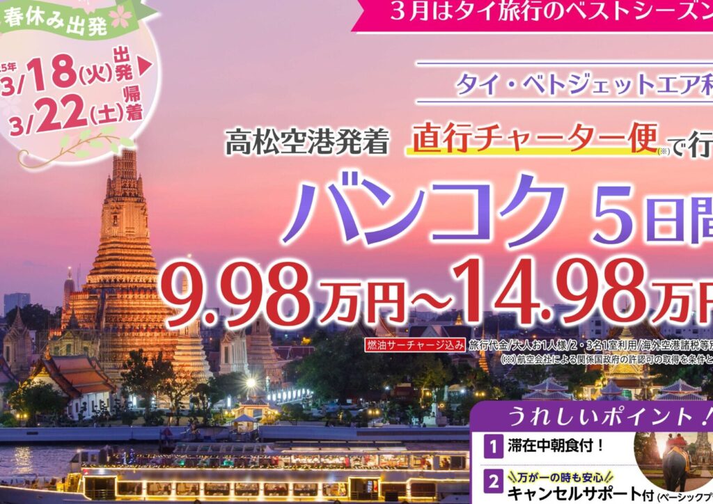 高松からバンコクへの直行便が運航開始されることで、旅行がますます便利になります。特に乗り継ぎの手間が省けるため、スムーズな移動が期待できます。