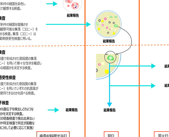 - 抗生物質感受性:今後の治療方針に影響。