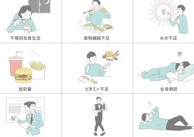 食事は便秘に大きな影響を与えます。以下は改善点です: