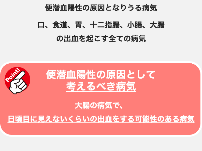 消化器系の病気は、便潜血反応が陽性となる主要な要因だ。具体的には以下が含まれる: