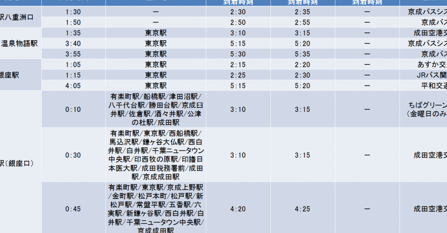 | 出発時刻 | 到着時刻 | 所要時間 |